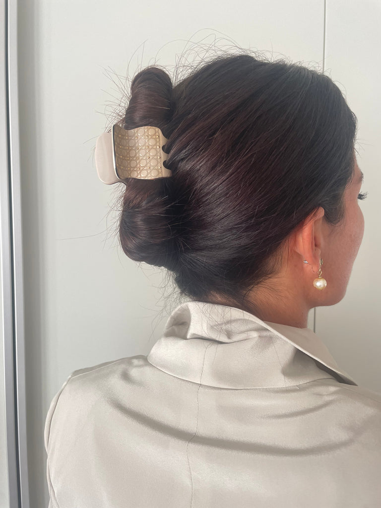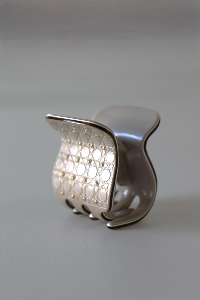 Una de nuestras pinzas mas vendidas, la Pinza Mediana, ahora en el nuevo acabado Cannage, una pieza sencilla, elegante y práctica que aporta delicadeza y carácter al mismo tiempo.